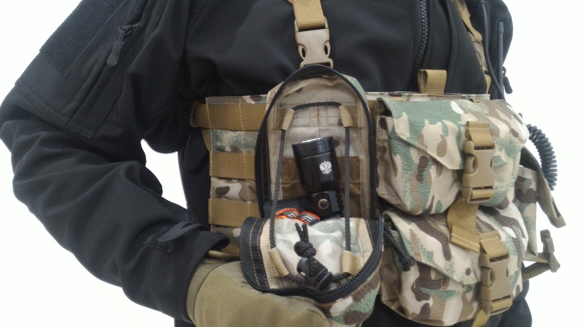 В нагруднике "Сибирь 8" использована система крепления Molle. МOLLE - аббревиатура от Modular Lightweight Load-carrying Equipment, что дословно переводится с английского как Модульное Облегчённое (легковесное) Разгрузочное Снаряжение.